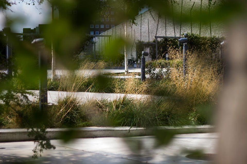 Taget er 7.200 m2 og består af udearealer, en cykelsti og en stor, offentligt tilgængelig taghave med græs, bunddækkende planter og plantekasser. Taghaven, der kaldes "Det grønne strøg", er et stille byrum tæt på havnen, tilbagetrukket fra byens larm.